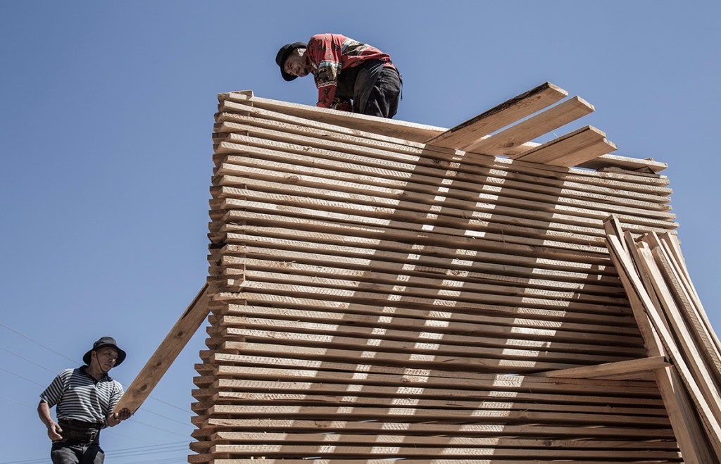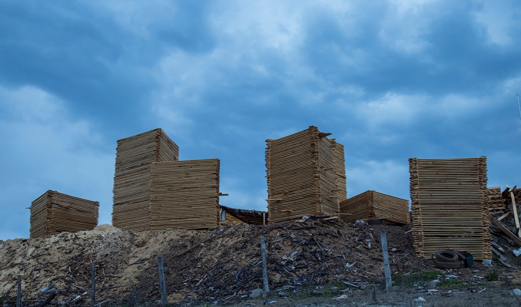 El paisaje de pronto se ve intervenido por estas esculturas involuntarias de distinto tamaño y en ingeniosos acomodos según la forma de las maderas. Aunque generalmente usan maquinarias para cortar y tallar los troncos, el trabajo precisamente del apilado es totalmente manual. Dos o tres personas se van pasando las maderas para irlas formando una a una hasta conformar estas estructuras que parecieran hechas con otro propósito además del simplemente funcional para ahorrar espacio. La próxima vez que pasen por un aserradero de este tipo, no duden en detenerse y dejarse sorprender de estas «instalaciones» in-situ.