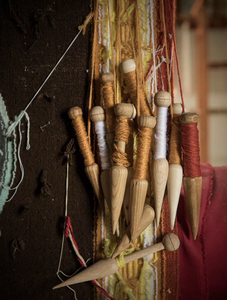 Daniel se encarga de conseguir la lana y textiles orgánicos y él mismo los tiñe con productos naturales como grana cochinilla, girasol y otras plantas de la región.