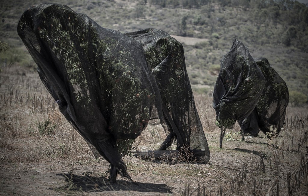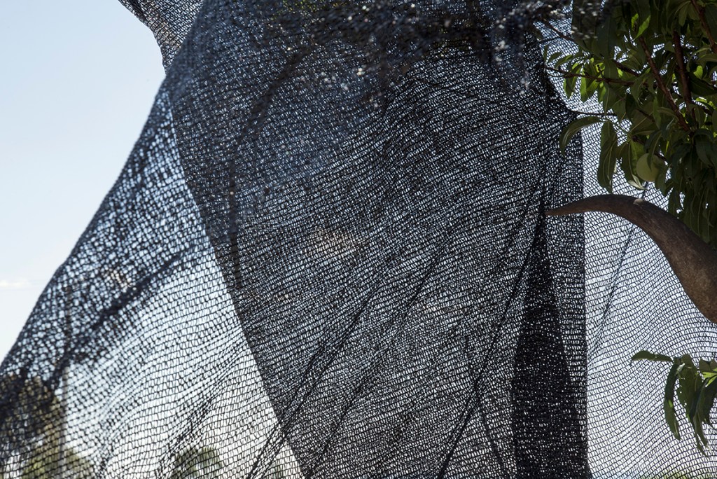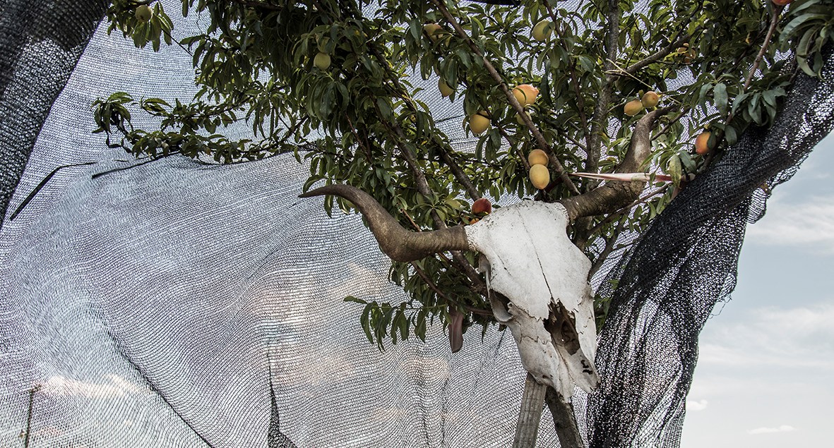 En uno de mis viajes hacia el bajío, pasando por alguna carretera de Atlacomulco, vislumbré un campo de árboles con mallas de protección para evitar que distintas aves se coman los frutos, en este caso, duraznos. Esto pareciera no tener mucha importancia pero me llamó mucho la atención el aspecto que llegaban a tener algunos de estos árboles, con esta especie de velo o vestido negro que además ondeaba por el fuerte viento que soplaba a orillas de la carretera.