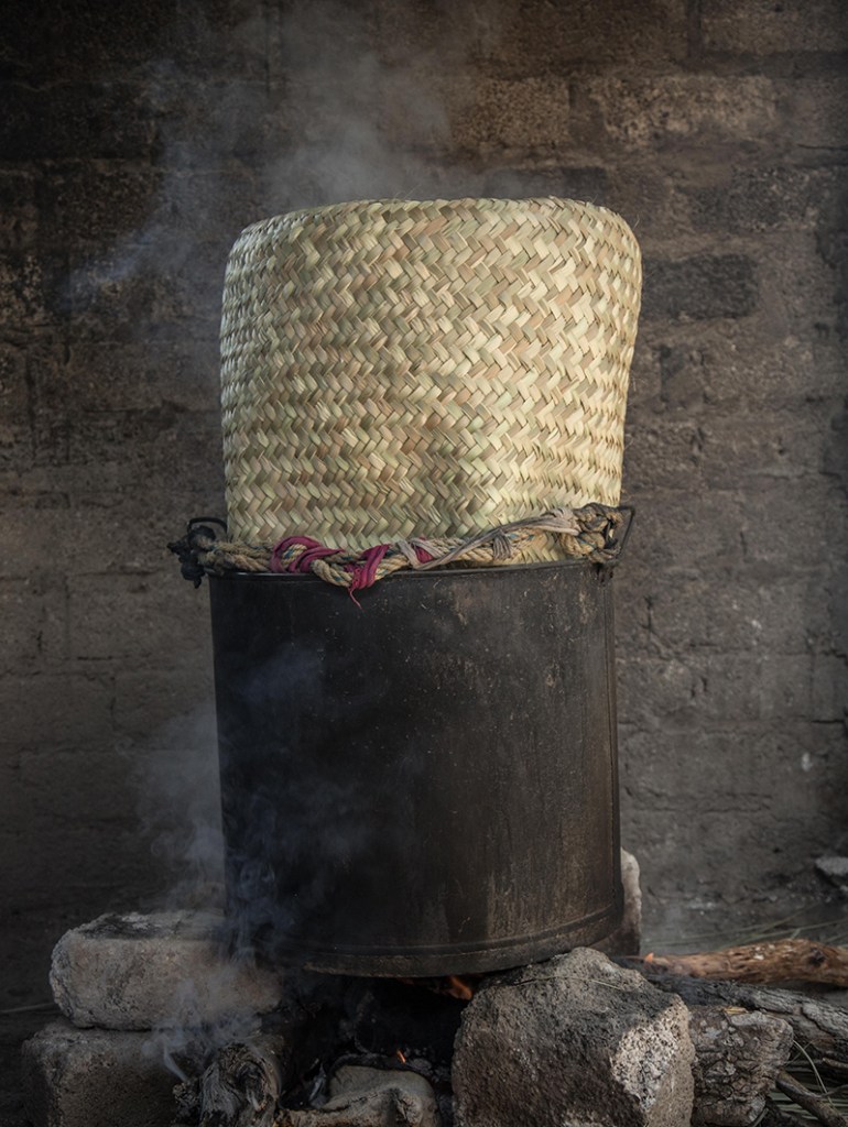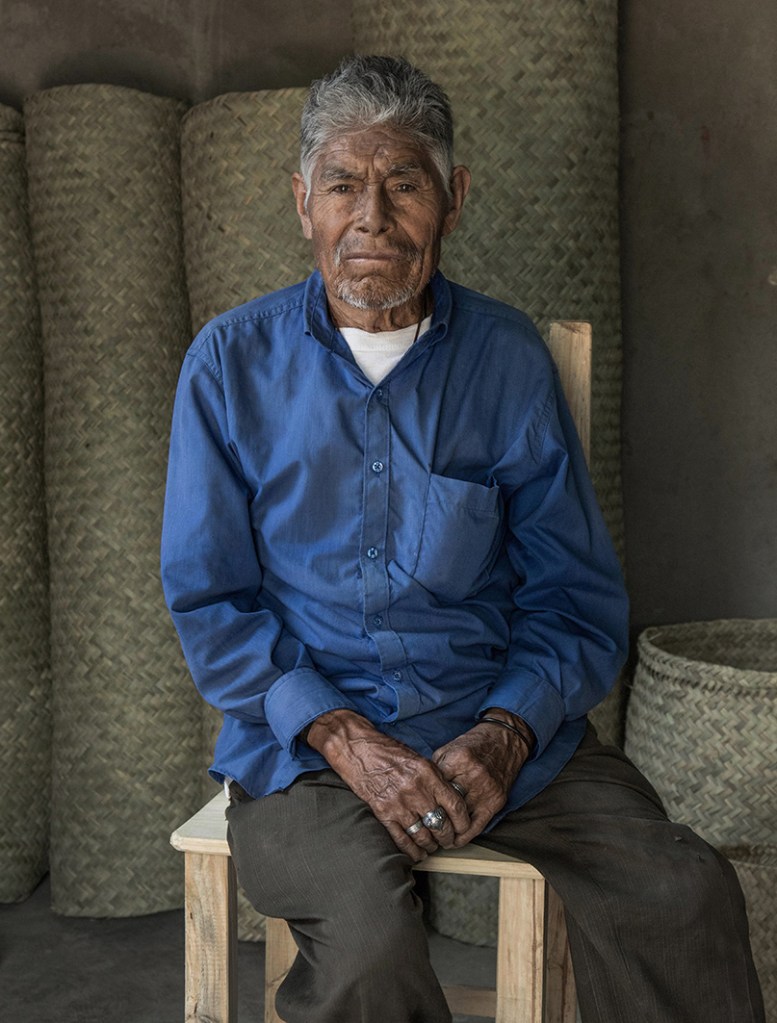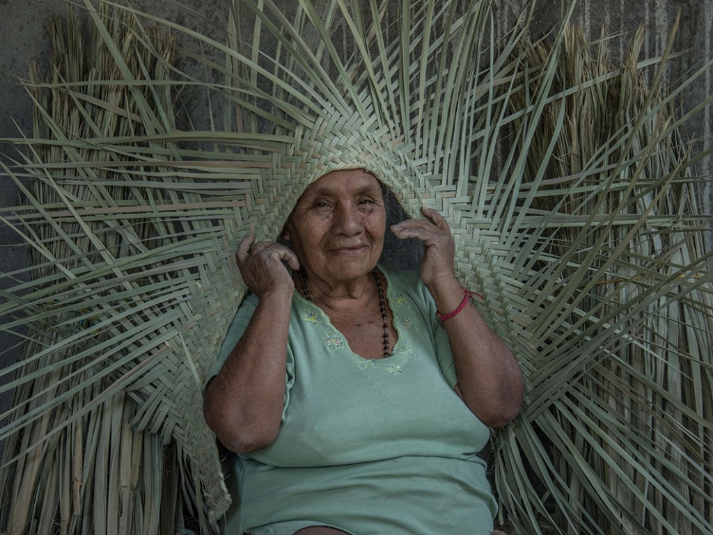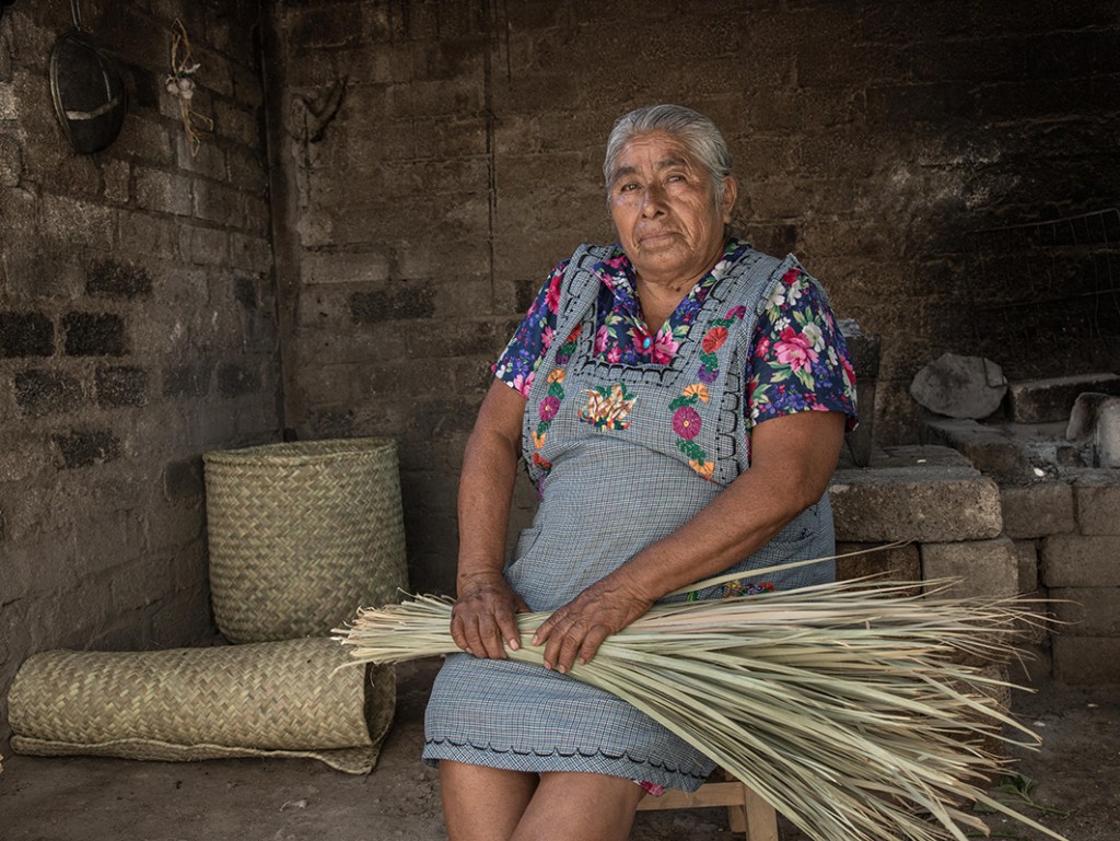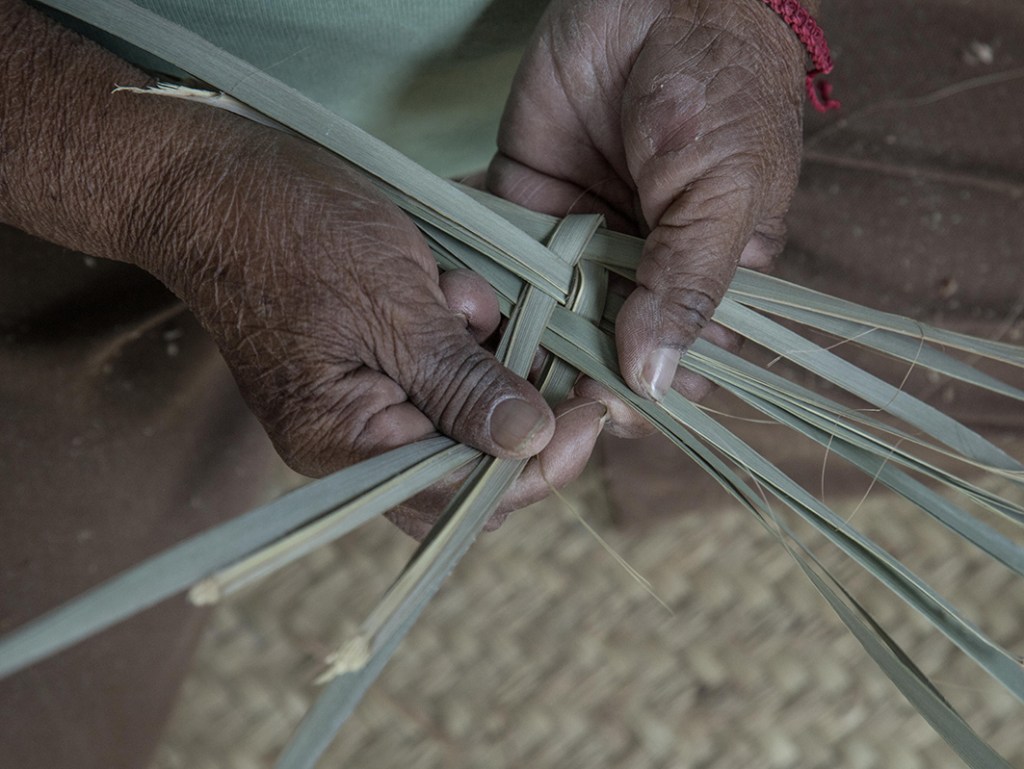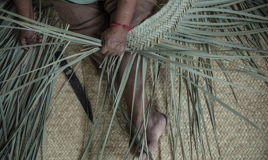 Con solo un cuchillo y las manos, estos maestros artesanos tardan un día en hacer un Petate grande, es decir, una jornada laboral.