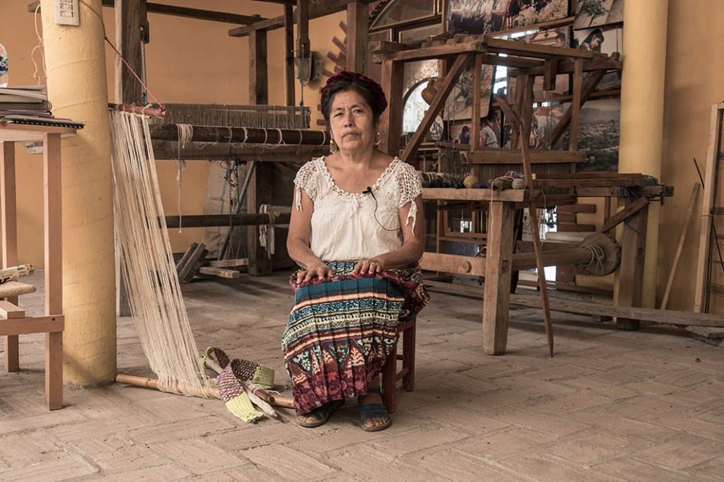 Uno de los lugares más famosos donde se fabrican tapetes y todo tipo de textiles, elaborados con telar de pedal es Teotitlán, muy cerca de la ciudad de Oaxaca. Desde que uno va entrando al pueblo por la carretera principal, nos percatamos de que en este lugar se tejen tapetes, ya que por los dos lados del camino nos encontramos talleres artesanales evidenciados por los grandes telares que muchas veces están dispuestos en las fachadas de las casas para atraer a los potenciales compradores. Casi todos los artesanos de tapetes son hombres. Es una costumbre, una tradición que en este pueblo se enseñe primero a los hombres a tejer, dicen que por lo pesado que puede ser dado el tamaño de los tapetes, pero también hay mujeres que se han organizado para tener su propia cooperativa de teñido y tejido. Tal es el caso de Josefina Jiménez, fundadora y líder de la cooperativa «Mujeres que tejen», donde un grupo de mujeres elabora muy diversos diseños de tapetes y otro tipo de productos. https://mujeresquetejen.com/en/