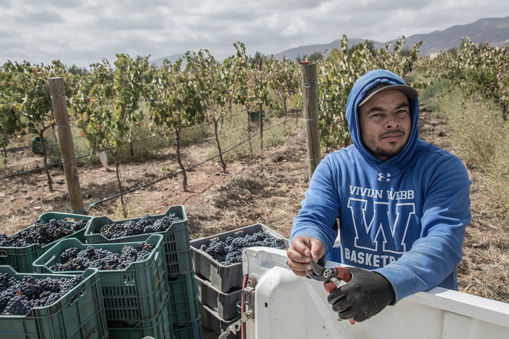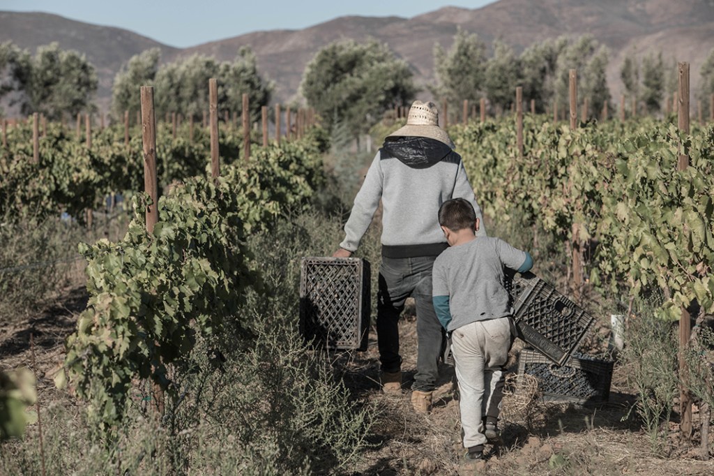 Para nadie es un secreto que la cultura vinícola en México, se concentra en Parras Coahuila, algunas zonas de Querétaro y sobre todo en el Valle de Guadalupe en Ensenada. Las imágenes que aparecen más abajo, son justo de una finca llamada “El camino”, donde se pisca uva para diferentes vinícolas artesanales de la zona. Una de ellas, “Retorno” utiliza ciertas variedades de uva de esta región para elaborar un vino totalmente artesanal, utilizando una prensa manual y procesos de destilación sin químicos que corrijan el sabor, obteniendo por ende siempre variaciones en sus marcas de vino.