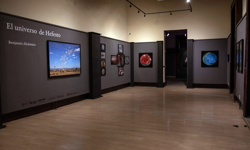 Exposición «El universo de Hefesto» del 6 de marzo al 12 de abril del 2025. Exposición integrada por 35 imágenes impresas y montadas en diversos tamaños y se exhibieron diversos videos en 2 monitores.